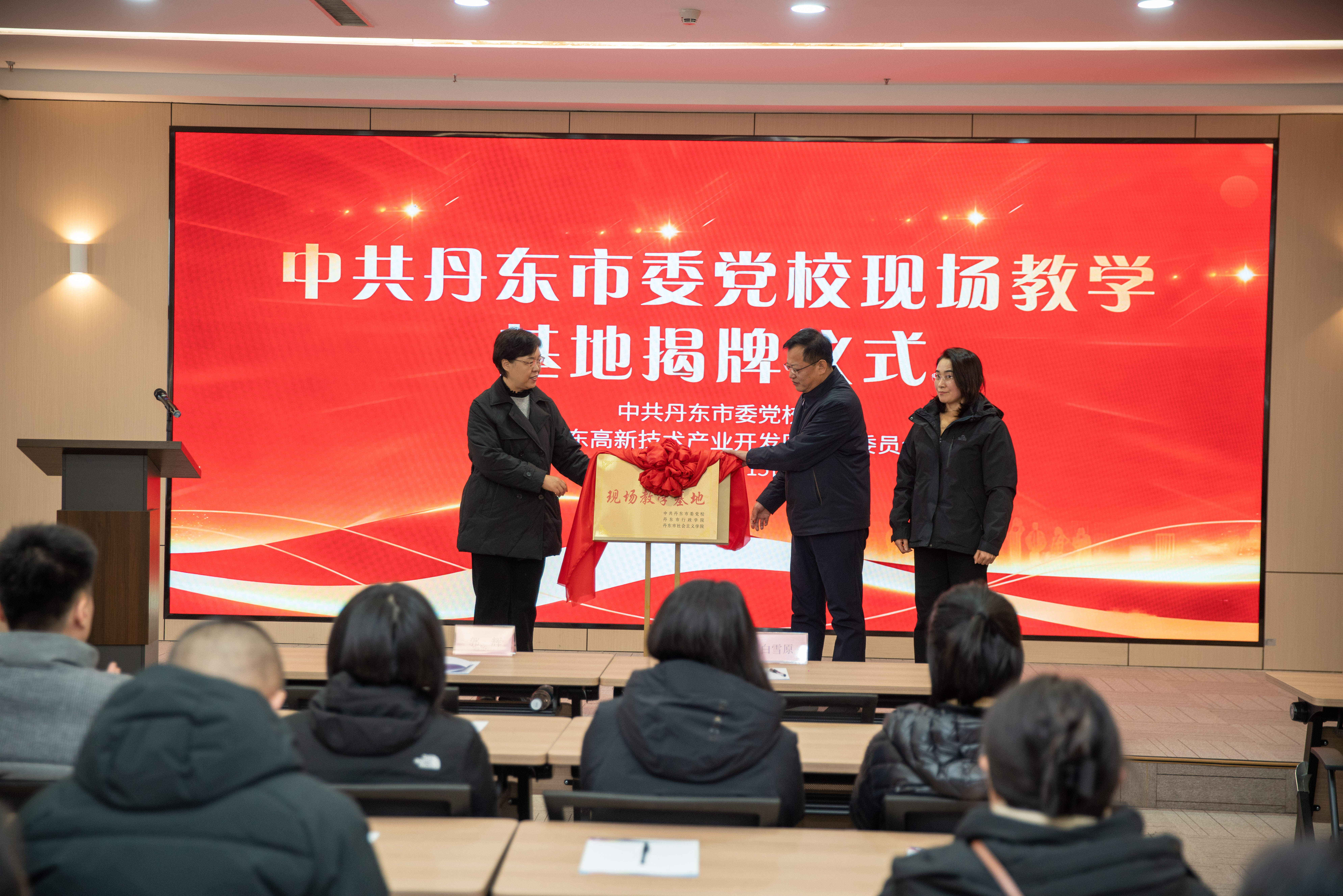 2025年12月15日,丹东市委党校现场教学基地揭牌仪式在丹东高新区产业技术创新与育成中心隆重举行。市委党校分管日常工作的副校长郭辉,丹东高新区党工委书记、管委会主任白雪原,党工委委员、管委会副主任孙晓丹共同为基地揭牌。市委党校副校长张尉,市委党校相关教师以及2025年乡科级进修任职班学员共同出席仪式。此举旨在将干部教育培训的课堂深度融入科技创新与产业发展的最前沿,标志着我市在创新干部培养模式、服务振兴发展上开启了校地合作的新篇章。