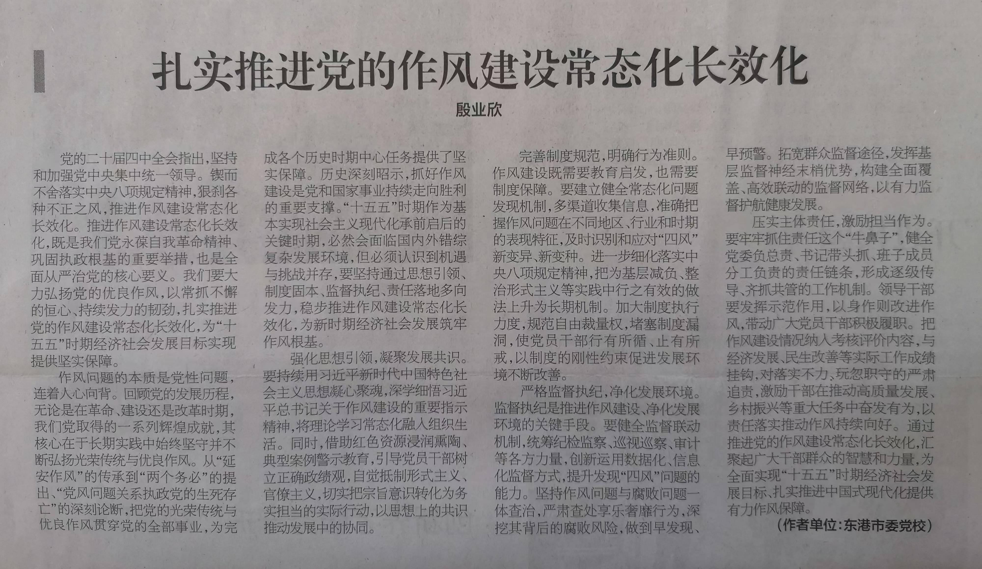东港市委党校 殷业欣:扎实推进党的作风建设常态化长效化