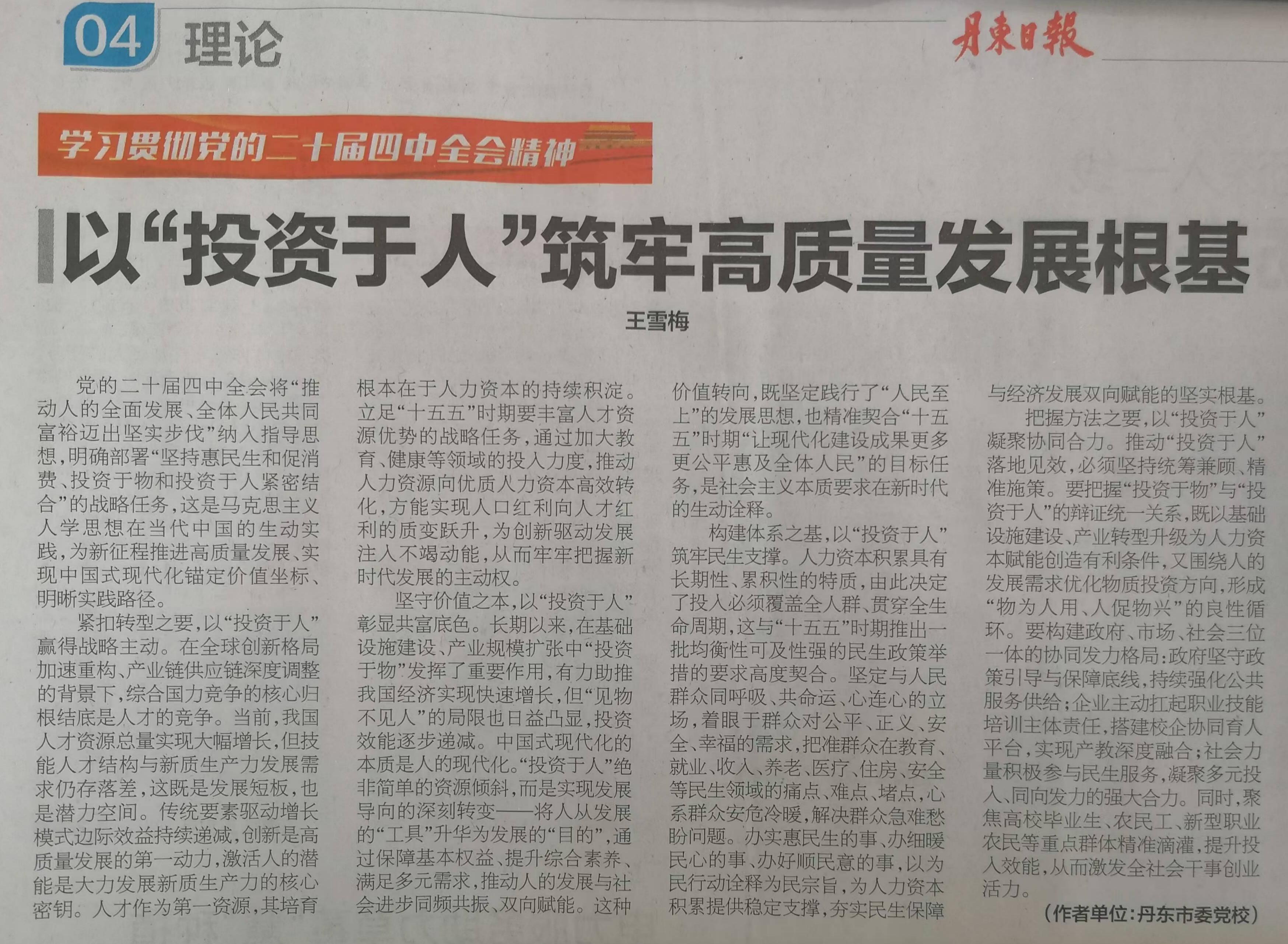 市委党校 王雪梅:以“投资于人”筑牢高质量发展根基
