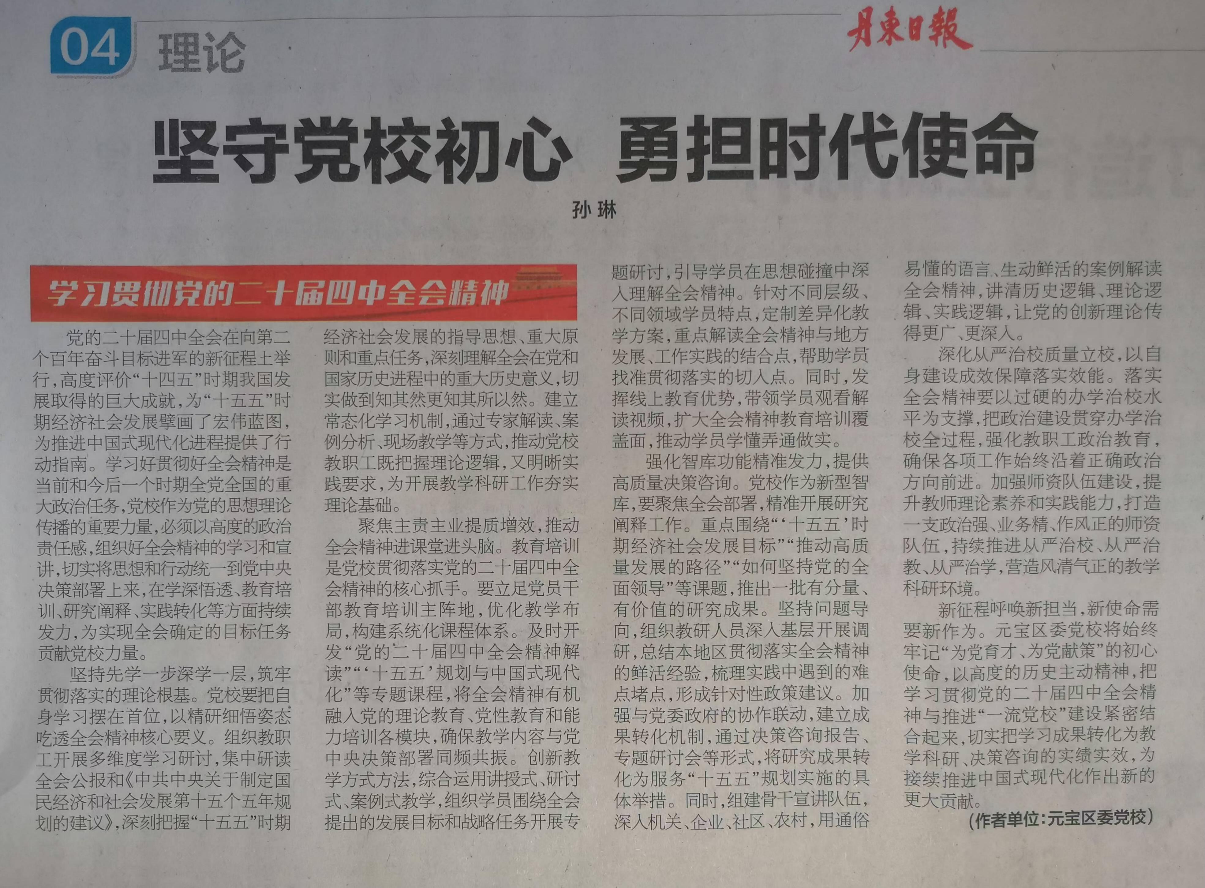 元宝区委党校 孙琳:坚守党校初心 勇担时代使命