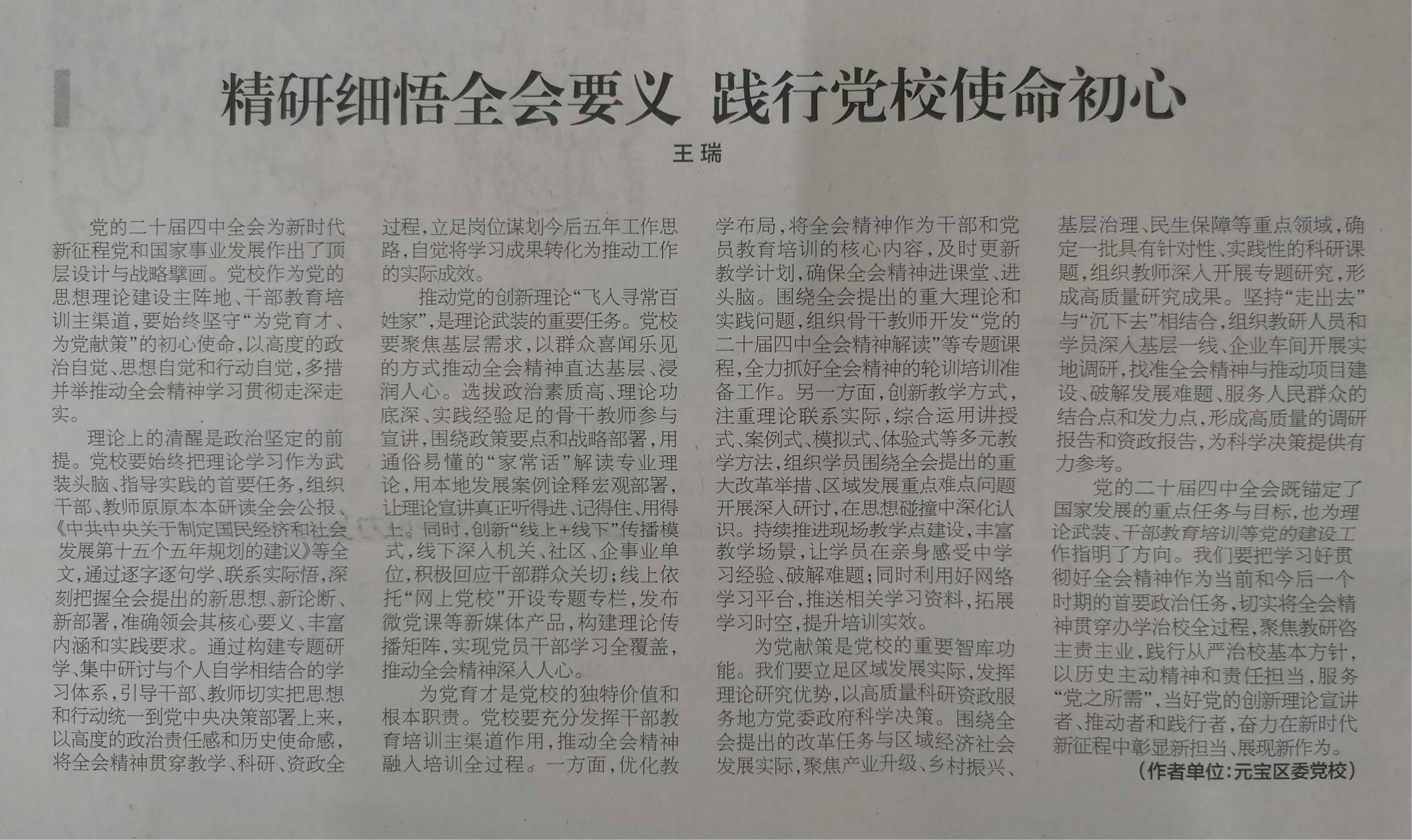元宝区委党校 王瑞:精研细悟全会要义 践行党校使命初心