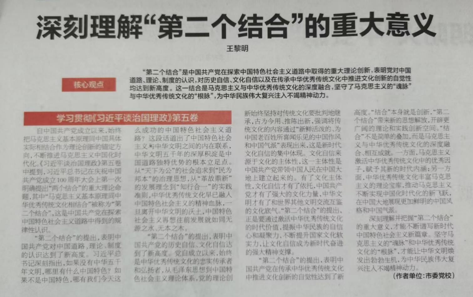 市委党校 王黎明:深刻理解“第二个结合”的重大意义